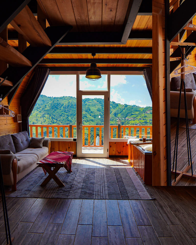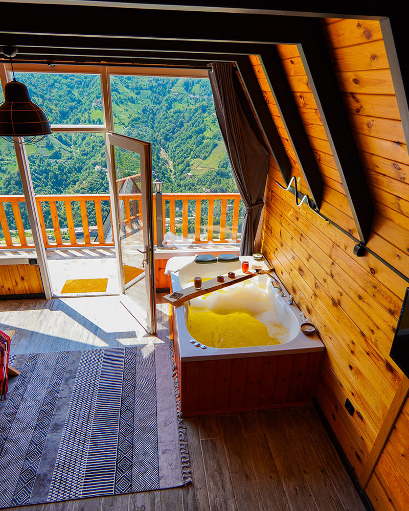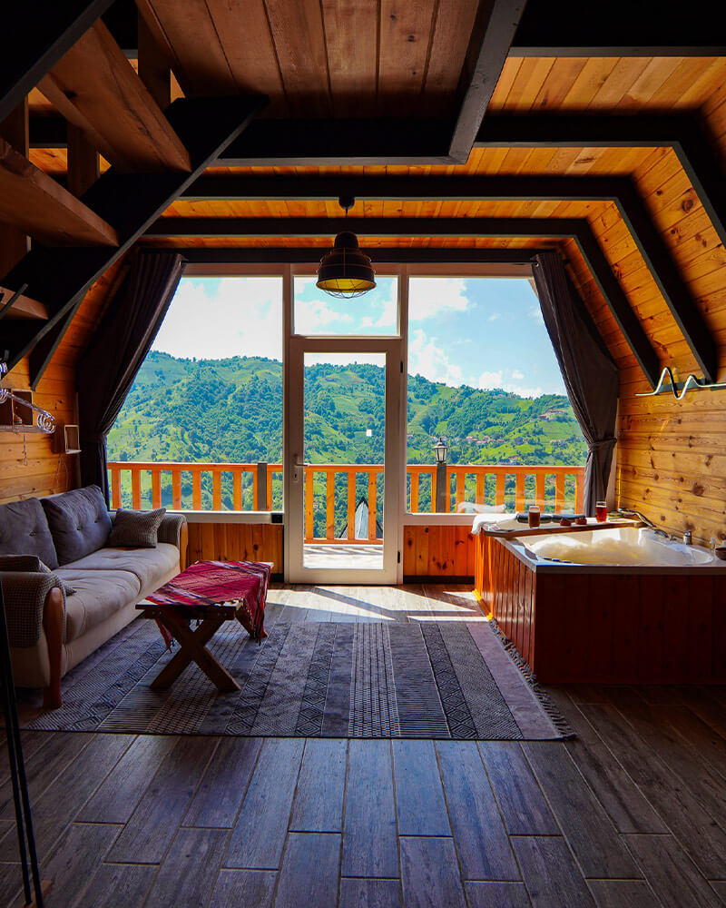 İç mekânda doğayla iç içe bir ambiyans sunan jakuzili suit odamızda, konforla manzaranın birleştiği özel bir tatil sizi bekliyor.